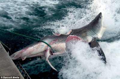 Well, in this case it's the twenty-foot great white shark that bit the ten-footer nearly in half, and which is presumably still prowling the area off Queensland, Australia: